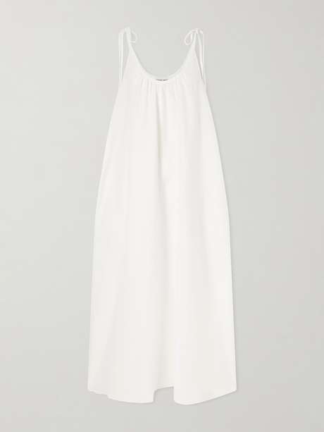 Anine Bing’s 'Flora' maxi dress is cut from a Lyocell and linen-blend, ideal for warm seasons. It has a relaxed fit with a scooped gathered neckline with adjustable self-tied straps, and falls to the ankles in soft pleats.