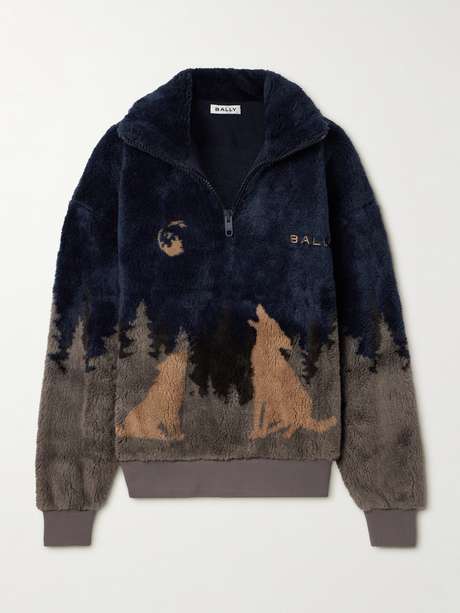 Bally's jacket is the perfect addition to your cold-weather wardrobe. Made from fuzzy fleece, it's printed with the brand's moniker and a pair of wolves howling at the moonlight.