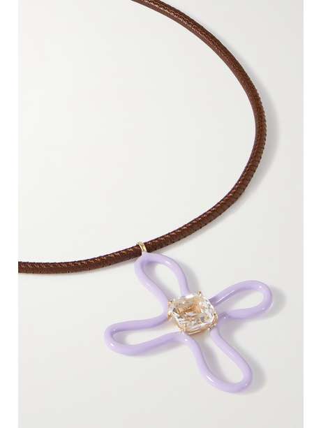 BEA BONGIASCA Pop 9-karat gold, rock crystal, enamel and leather choker