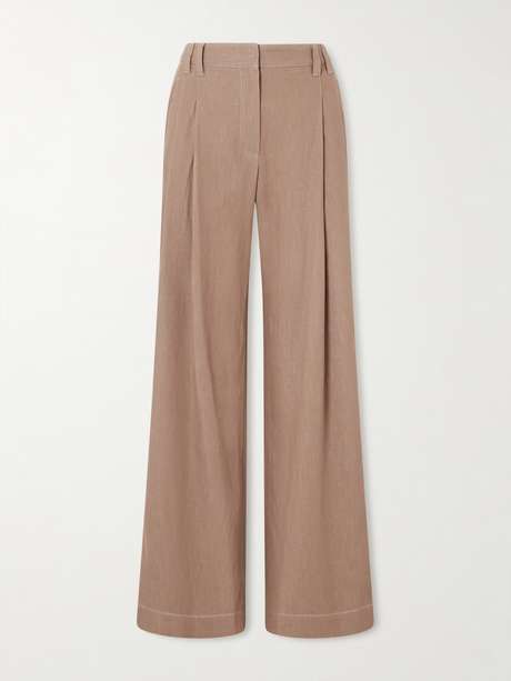 Brunello Cucinelli's high-waisted jeans have been tailored in Italy and pleated down the front of each wide leg. Lightly topstitched, they're also traced with Monili beads, which continue to be a shining house signature.