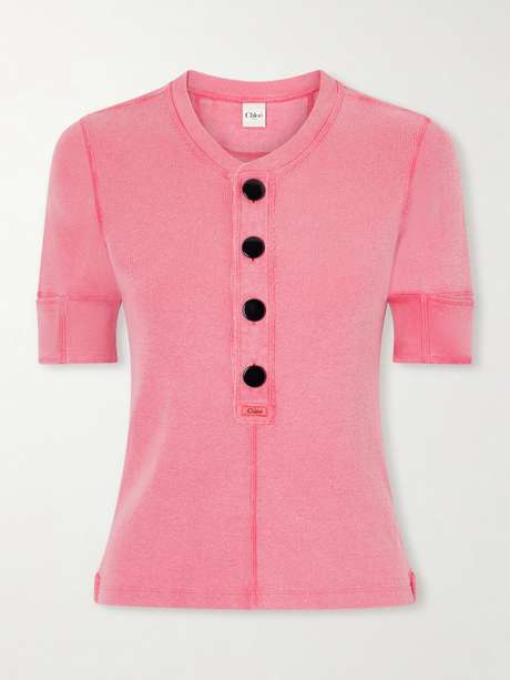 Chloé's tee will add a pop of colour to any outfit. It's made from pink cotton-jersey and stitched with black buttons at the front. The faded finish and ribbed texture lends a vintage feel.
