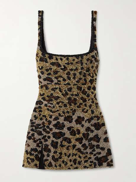EXCLUSIVE AT NET A PORTER. Hearkening to the confidence of old Hollywood starlets, Clio Peppiatt's 'Eartha' mini dress is saturated with glinting crystals in a striking leopard-print pattern. It's cut close from stretch-tulle to highlight your curves and has a square neckline and alluring thigh slit.