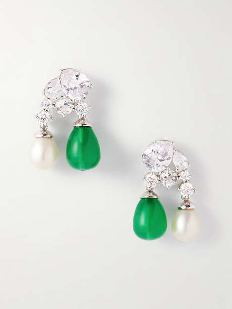 EXCLUSIVE AT NET-A-PORTER. Completedworks' earrings have teardrop-shaped pearls and green resin details that add a small pop of color to outfits. They're plated with rhodium and are set with cubic zirconia crystals that shimmer in all directions.