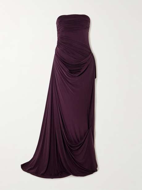 Make your next occasion extra special with Danielle Frankel's 'Harris' gown. Cut from fluid satin-jersey, it has a strapless profile and is ruched and draped in swathes to glide down your figure. There's something so old Hollywood about it.