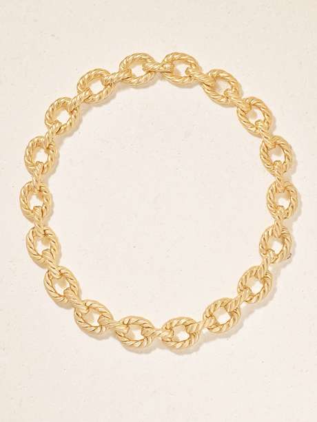 David Yurman's signature 'Sculpted Cable' collection draws on architecture and bas-relief sculptures. This necklace is crafted from 18-karat gold that's intricately engraved with a waved pattern and fastens with a discrete closure.