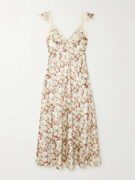 DÔEN Fiona lace-trimmed floral-print silk-satin midi dress