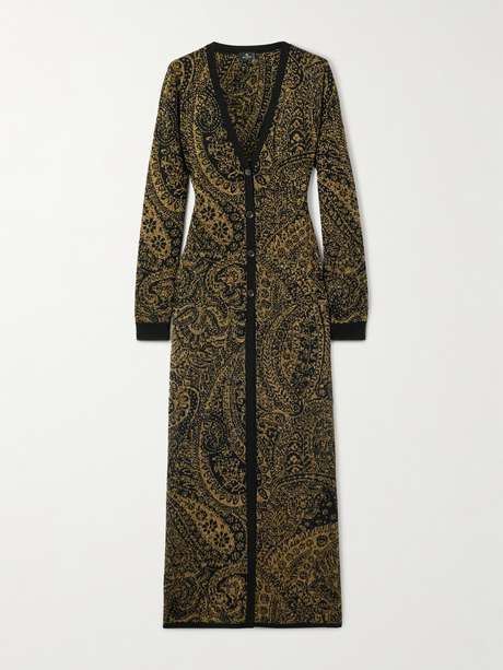 Etro's cardigan has a longline shape that falls to the same ankle-sweeping length as the matching dress in our edit - wear them together for a perfectly coordinated look. It's made from wool-blend devoré-velvet with a shimmering metallic paisley motif and has contrasting edges.