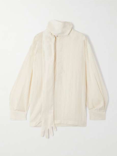 Jean Paul Gaultier's collections are loved for their eccentricity. This blouse is made from Lyocell-blend poplin with a slightly crinkled finish and has a playful scarf detail shaped like a pair of gloves.