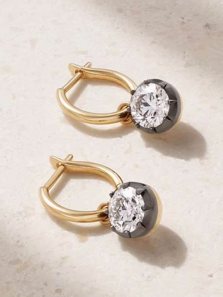 JESSICA MCCORMACK Gypset 18-karat yellow and blackened white gold 0.70-carat diamond hoop earrings