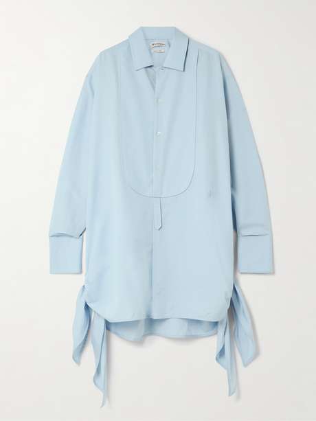 JW Anderson's shirt dress is modeled on classic tuxedos. Made from lightweight cotton and silk-blend, it has a loose fit and adjustable side ties along the curved, hi-low hem.