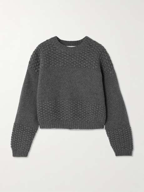 Lisa Yang's 'Signe' sweater is knitted using pearl brioche and bobble stitches - the subtle, graphic stripe they create evokes vintage sportswear. It's knitted from pure cashmere, which feels beautiful.