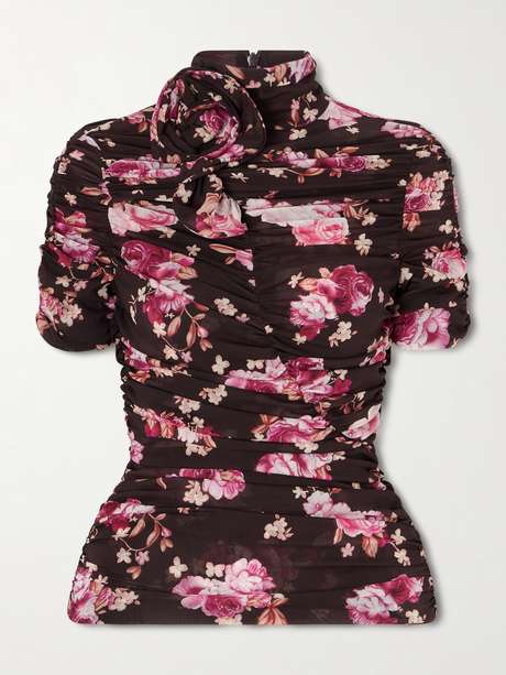 Magda Butrym has a way of making flowers look even prettier. Blooming at the neckline with a 3D flower, this top in stretch-silk is traced with soft ruching and has a romantic floral print. It's padded at the hips for shape.