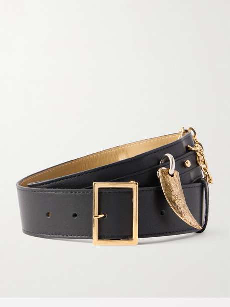 Maison Mayle's 'Del Rio' belt is embellished with a hammered gold shark tooth pendant – it's sure to stand out from belts already in your collection. Made from black leather, it’s looped with a square buckle and anchor chain for edge.