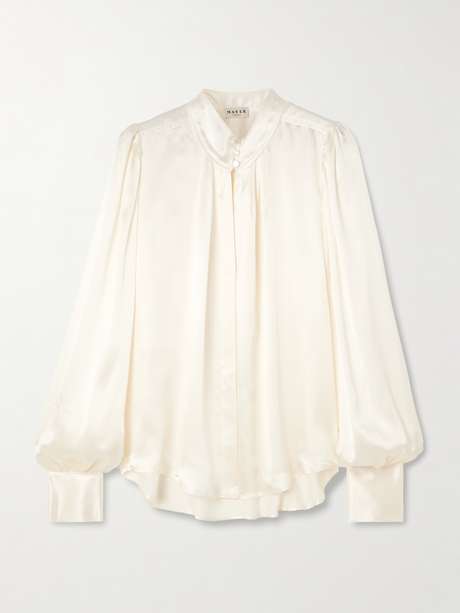 MAISON MAYLE Val D'Isere gathered silk-charmeuse blouse