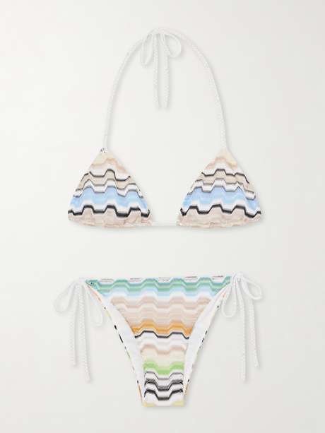 Missoni Mare's bikini is crochet-knitted with metallic zig-zag stripes, which gives it a subtle sparkle when you're out in the sun. Both the triangle top and briefs have adjustable ties.