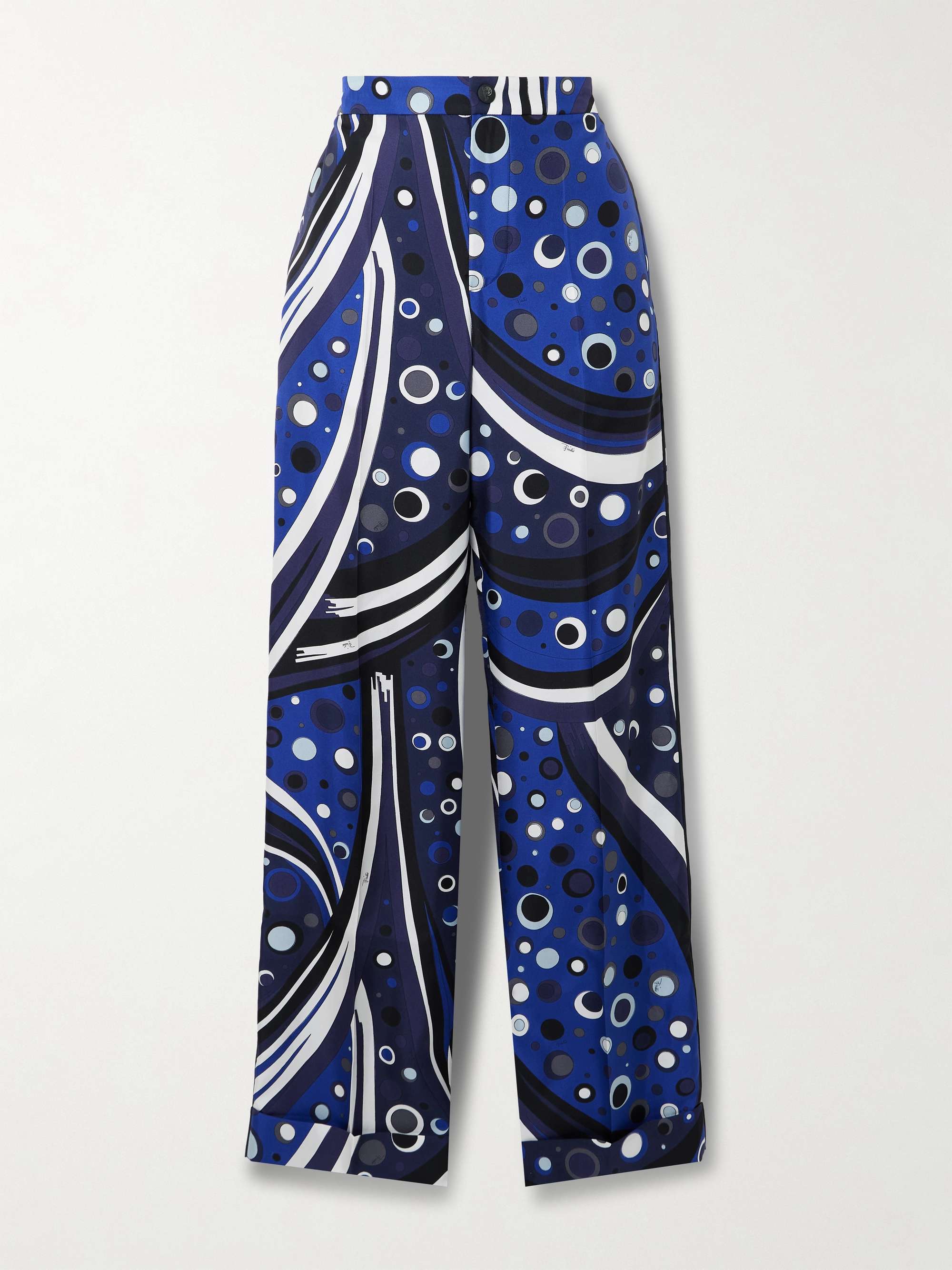 PUCCI's pants feature the label's archival 'Fontane' print, which was designed to mimic the dynamic flow of water. Tailored from lightweight silk-twill, they sit high on the waist and fall to breezy legs. Lift the floor-skimming cuffs with heels or ankle boots.
