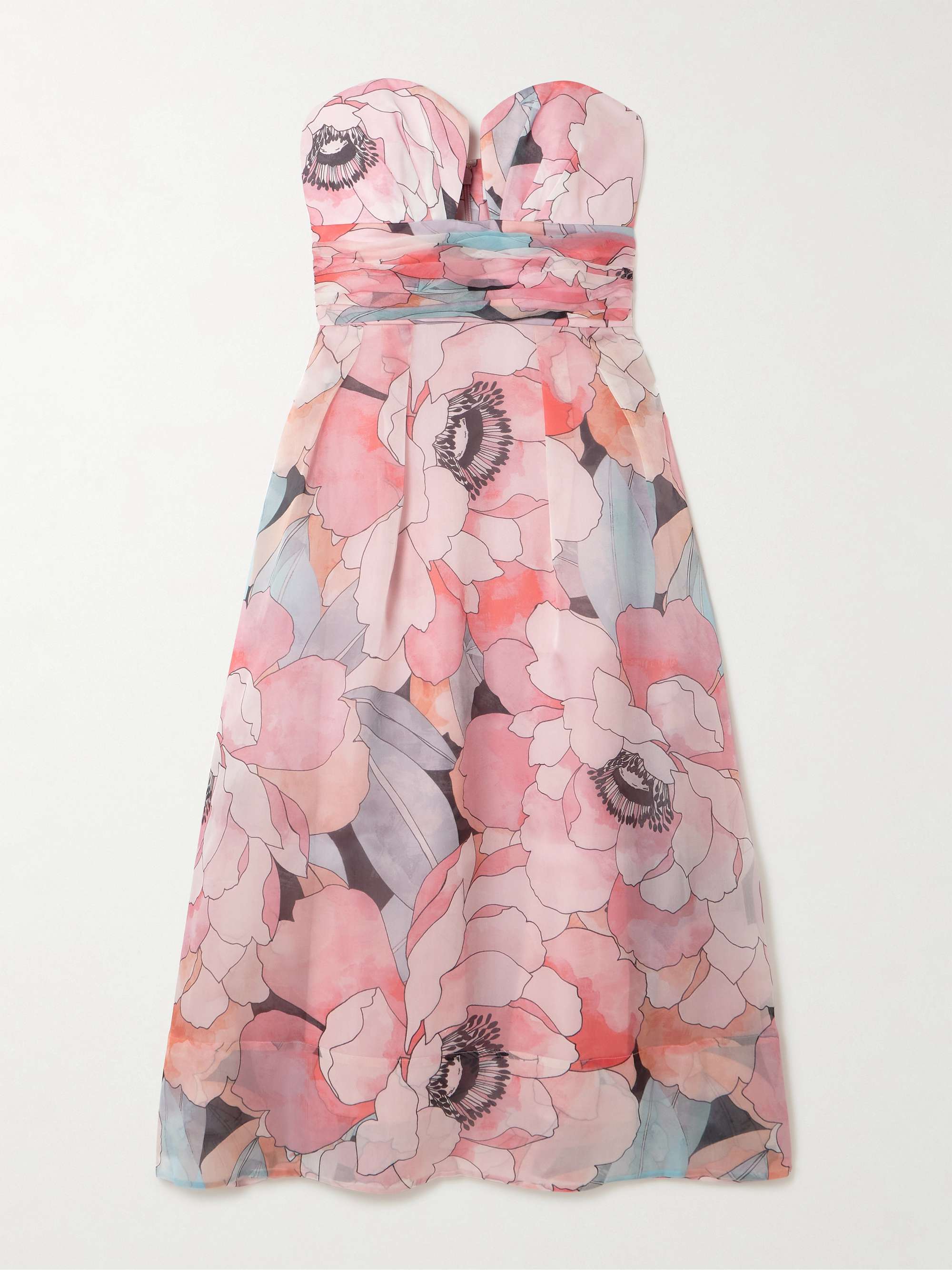 REBECCA VALLANCE Strapless gathered floral-print silk-organza midi dress