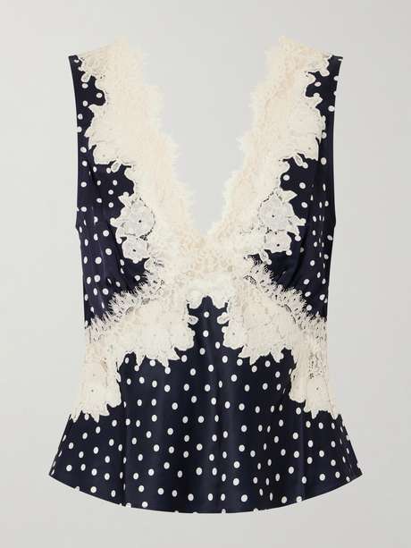 RIXO’s 'Emmie' top has a distinct vintage feel. Crafted from satin, it’s patterned with classic polka dots and features a plunging V-neckline trimmed with lace. Style it with the 'Matilde' skirt from our edit.