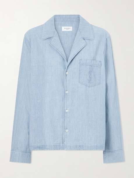 SAINT LAURENT’s shirt is cut from soft cotton-chambray in a denim-like wash that lends it a subtle vintage feel. Designed in a relaxed profile with piped trims, it’s finished with a chest pocket embroidered with the house’s signature Cassandre logo.