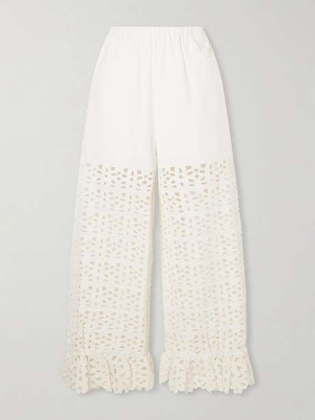 SEA Leila broderie anglaise-trimmed cotton and linen-blend wide-leg pants