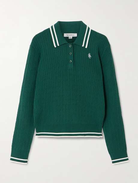 SPORTY & RICH Embroidered striped cable-knit polo shirt