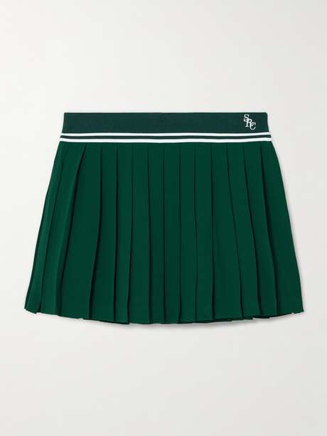 Classic court style inspires Sporty & Rich's 'Abigail' mini skirt. Designed to sit on the hips, it's cut from smooth crepe de chine, pleated to enhance your movements and detailed with contrast embroidery including an 'SRC' logo. No matter how strong your serving skills, its super short length is sure to boost your confidence.