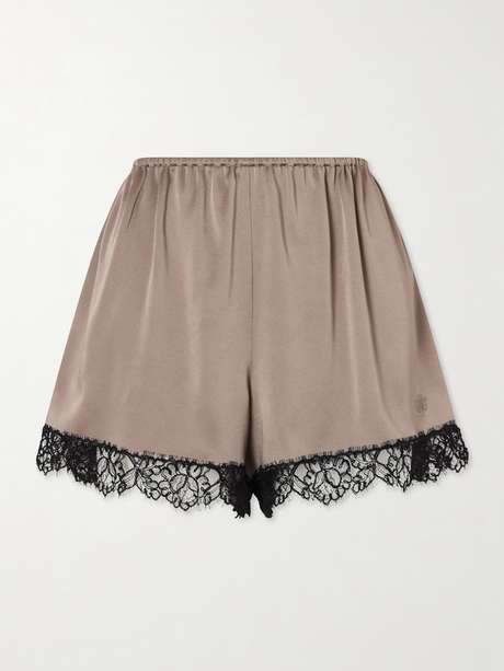 STELLA MCCARTNEY Lace-trimmed embroidered satin shorts