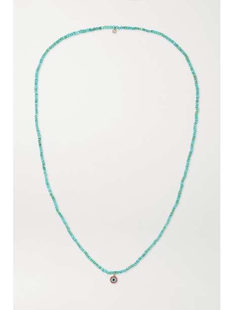 SYDNEY EVAN Evil Eye 14-karat gold, enamel, turquoise and ruby necklace