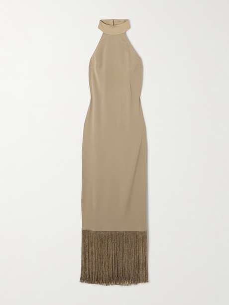 Taller Marmo’s ‘Berlin’ gown is traced with swishy fringing along the hem, making every step you take look so mesmerizing. It's cut from lightweight crepe and has a chic halterneck and slim fit.