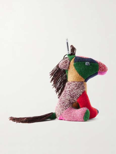 The Elder Statesman's keychain is made from a patchwork of colorful cashmere to depict a cute pony. It's traced with tactile fringing along the mane and tail and has a silver-tone clasp, so you can attach it to your keys or favorite bag.