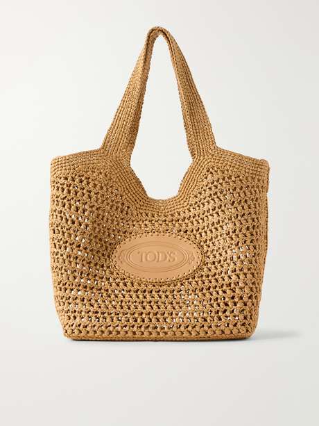 This tote by Tod's is woven from raffia in an airy construction that highlights its natural texture. It has wide shoulder straps that rest comfortably over the shoulder, while a tonal oval logo patch at the front adds a subtle signature detail. The spacious interior makes it a practical warm-weather companion.