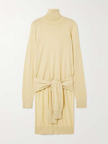 TOTEME's sweater has a long back hem and sleeve-like ties that create the illusion of a second sweater being worn around your waist. It's made from a lightweight wool and silk-blend with ribbed trims and a chic turtleneck.