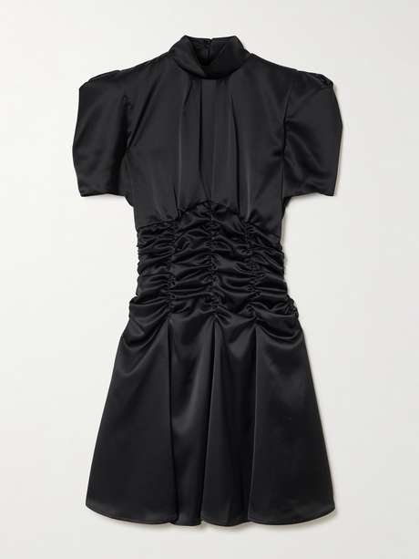 Violante Nessi's 'Balthus' mini dress is the perfect combination of chic and sweet. Made from glossy satin, it's ruched at the waist to accentuate your figure. It has a stand collar, gently puffed sleeves and an elegant keyhole slit at the back.