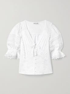 Guipure lace-trimmed broderie anglaise cotton top