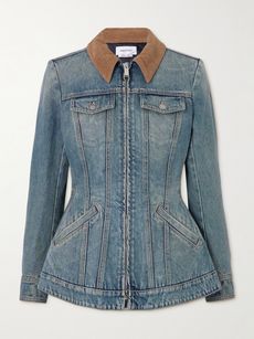 MCQUEENCorduroy-trimmed denim peplum jacket