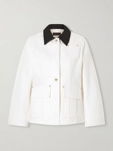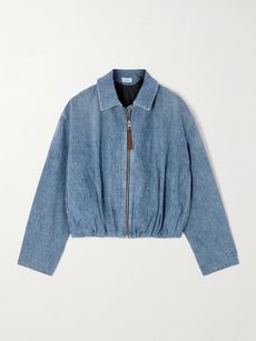 Denim jackets are also a clever layering piece for spring’s tricky trans-seasonal weather, and lend a sense of considered ease when worn over knits and under tailored coats. Another Tomorrow’s indigo denim style, for example, has a cropped silhouette that can be worn neatly buttoned-up beneath a billowing trench. Agolde’s ‘Radley’ jacket, meanwhile, comes in a dark brown with a hint of deep purple that will look chic styled with a cream turtleneck and chocolate-colored tailored pants. If you’re after something fashion-forward, look no further than Loewe’s directional, draped denim jacket with a logo on the reverse and a cool zippered fastening. Wear it with everything from trending column skirts to Bermuda shorts and sandals as the mercury rises.