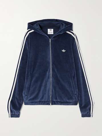 + Wales Bonner hooded striped cotton-blend velour zip-up sweatshirt