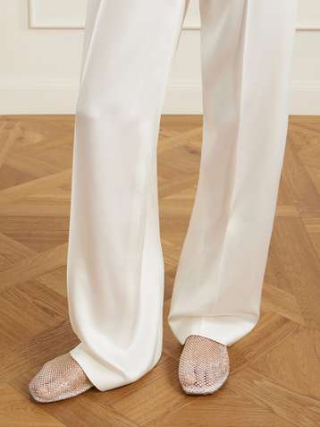 Minette leather-trimmed crystal-embellished mesh ballet flats