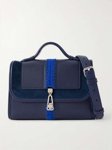 Leonora small crochet and suede-trimmed leather shoulder bag
