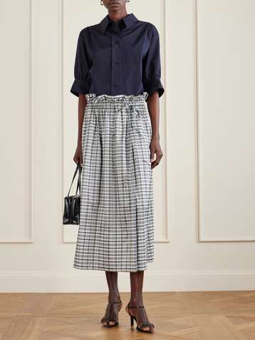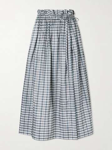 Belted pleated frayed checked cotton and wool-blend mini skirt