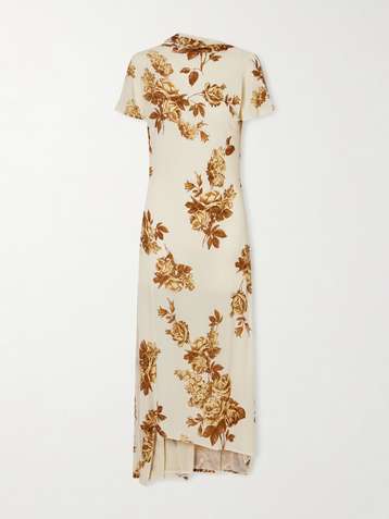 Embellished cutout ruched floral-print stretch-jersey halterneck mini dress