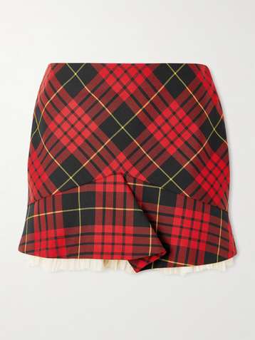 Crepon-trimmed checked woven mini skirt
