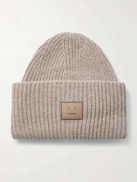 ACNE STUDIOS Appliquéd ribbed wool and yak-blend beanie