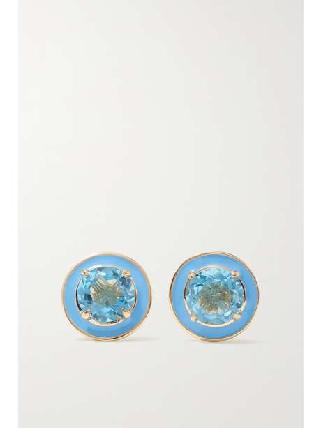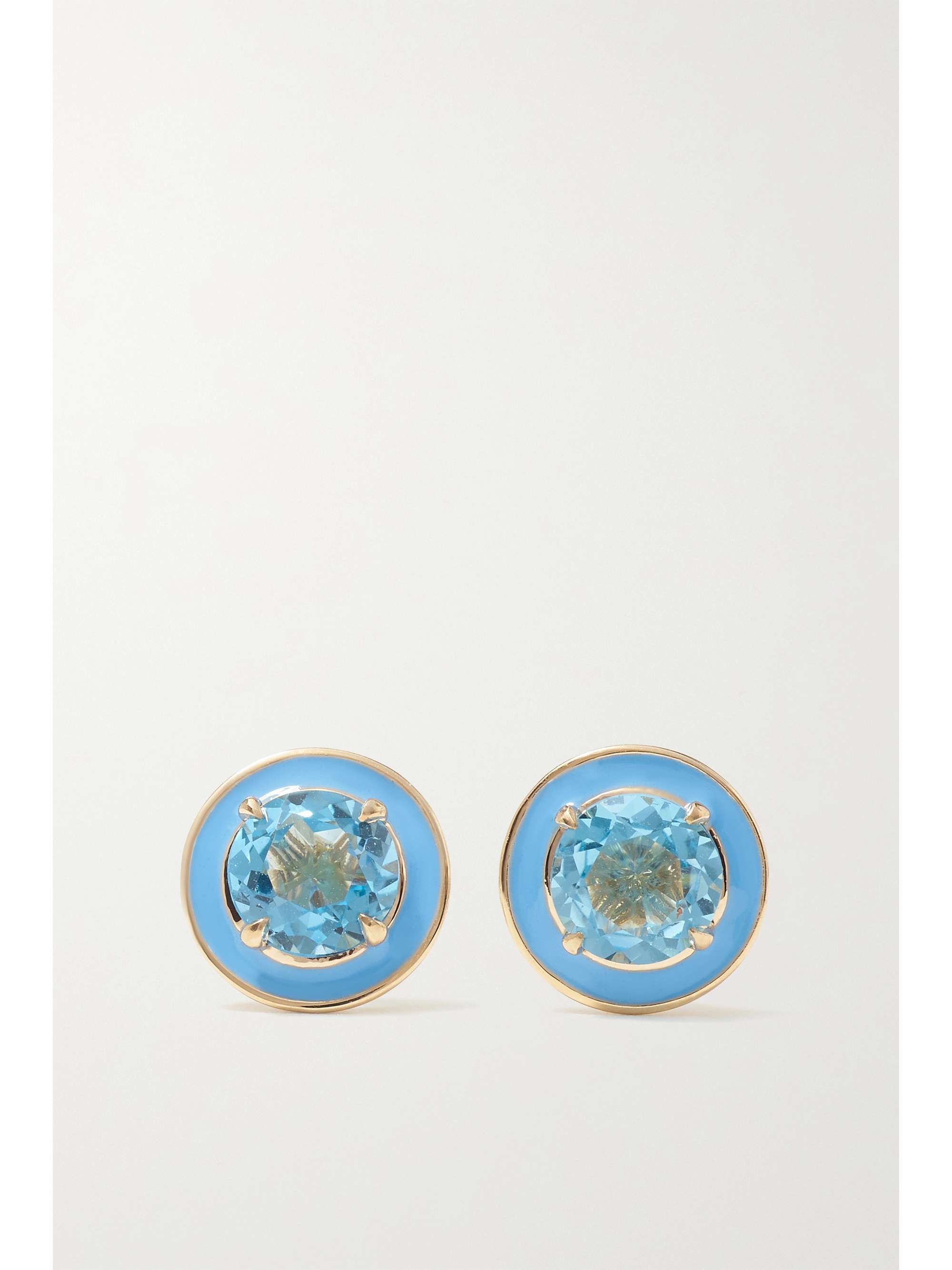 ALISON LOU 14-karat gold, enamel and topaz earrings