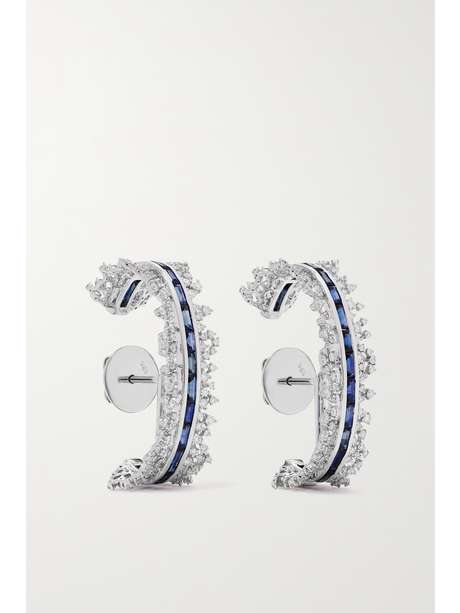 ANANYA Scatter 18-karat white gold, diamond and sapphire earrings