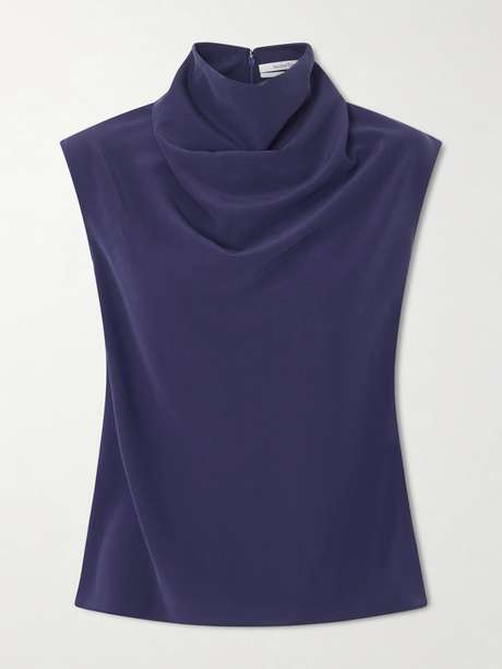 Another Tomorrow's top is bias-cut from the label's lightweight 'Peace Silk', chosen for its mindful production and defined by a crepe-like texture. It has a cowl turtleneck neckline which drapes beautifully.