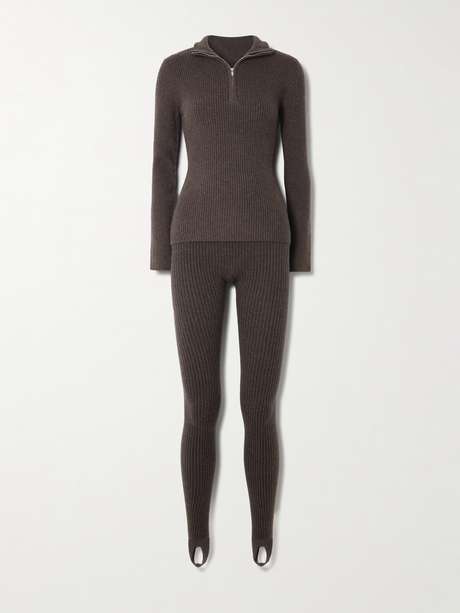 ARCH4 Ella ribbed cashmere half-zip sweater and leggings ski set