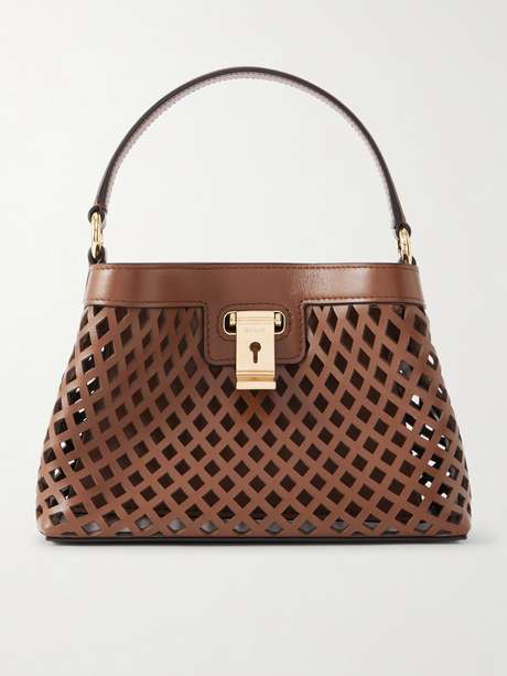 Bally’s ‘Liv’ mini tote is defined by its intricate cut-out leather construction. Framed with smooth trims, it’s finished with a polished gold-tone lock and a slot pocket that subtly peeks through the lattice.