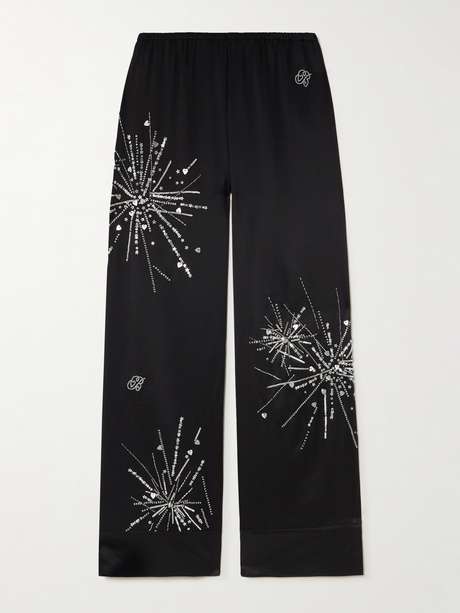 BERNADETTE Louis sequin-embellished silk-blend satin pajama pants