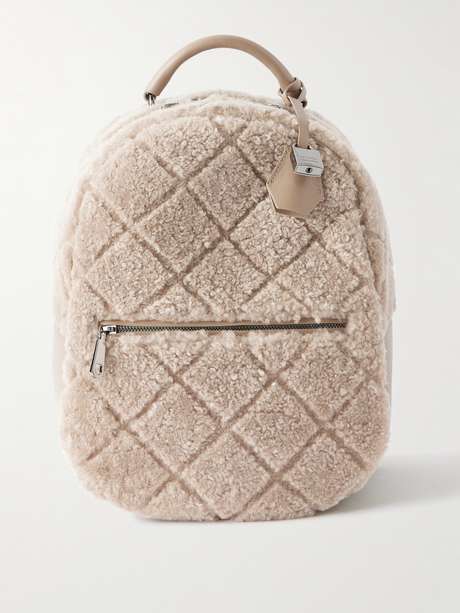Brunello Cucinelli's backpack is made from plush shearling that's debossed for a quilted effect. It's paneled with leather and sized to fit a book, wallet and water bottle.